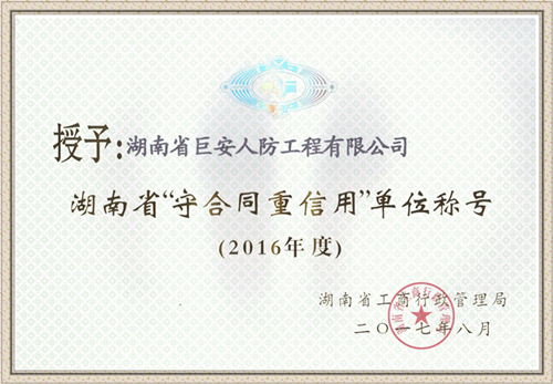 熱烈祝賀我司在湖南省工商行政管理局2016年《守合同重信用》企業(yè)評比中,連續(xù)三年榮獲湖南省《守合同重信用》單位稱號。