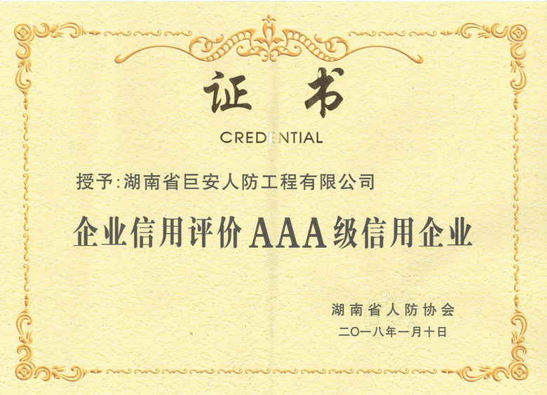 熱烈慶祝我司在2017年湖南省人防行業(yè)人防防護設備生產企業(yè)誠信評比中,榮獲《企業(yè)信用評價AAA信用企業(yè)》稱號。