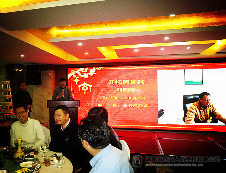 五年坎坷,五年跨越,五年的拼搏奮斗成就了今天的湖南巨安,在這并肩攜手的五年里,涌現(xiàn)出一批陪同公司共同成長(zhǎng)、貢獻(xiàn)突出、積極上進(jìn)的同仁,這一路走來(lái),他們見(jiàn)證湖南巨安的成長(zhǎng),也和湖南巨安共同進(jìn)步。晚宴上,對(duì)公司成立五年來(lái)一直陪伴公司共同成長(zhǎng)的12名員工進(jìn)行了表彰,公司副總經(jīng)理羅偉為他們頒發(fā)了開(kāi)拓榮譽(yù)獎(jiǎng),鼓勵(lì)他們?yōu)楣疚迥甑陌l(fā)展壯大做出的積極貢獻(xiàn),號(hào)召全體員工以他們?yōu)榘駱,銳意進(jìn)取、爭(zhēng)先創(chuàng)優(yōu),為公司發(fā)展做出新的更大貢獻(xiàn)。